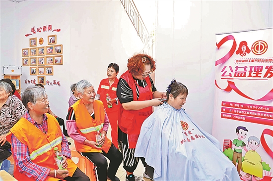 10月15日,浙江平湖,平湖市总工会联合当湖街道总工会为环卫工人开展免费理发活动。本报通讯员 范文斌 摄