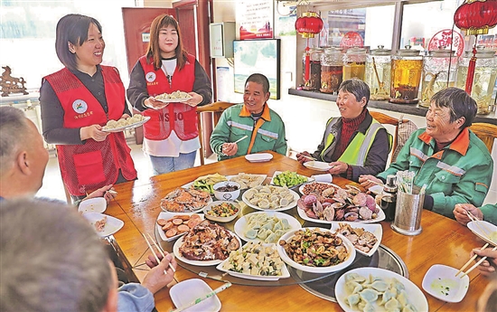 10月25日,河北秦皇岛,工人北里社区志愿者为环卫工人送上饺子,迎接“环卫工人节”。本报通讯员 曹建雄 摄