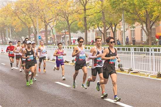 10月29日,2023年北京马拉松暨全国马拉松锦标赛(北京站)鸣枪开跑。3万余名选手从天安门广场出发,奔向比赛终点奥林匹克景观大道。本报记者 王伟伟 摄