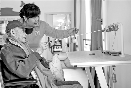 10月22日,在四川省成都市武侯区金煦福武侯万寿颐养中心,护理人员引导老人进行康复治疗。近年来,武侯区在推进养老服务业发展中,依托社区卫生服务中心,建设多个集健康护理、康复锻炼、文娱社交、精神关爱为一体的医养结合养老服务中心,就近且舒适普惠地服务区域内高龄、半失能、失能、失智老人。