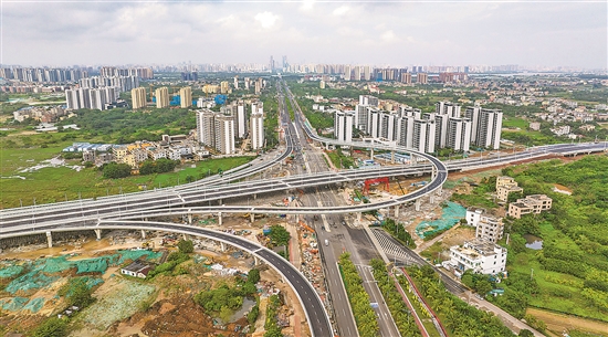 10月29日,海口美兰国际机场快速通道项目顺利实现主线桥通车。
