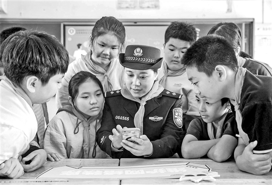 10月31日,在江苏省海安市白甸镇中心小学,海安市公安局民警向学生们介绍网络安全知识。《未成年人网络保护条例》将于2024年1月1日起施行,海安市白甸镇中心小学联合海安市公安局开展“网络安全进课堂”活动,引导小学生了解网络安全知识、提升网络文明素养。本报通讯员 翟慧勇 摄