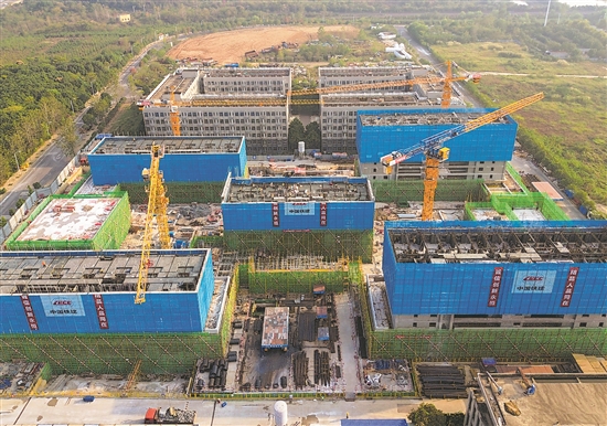 10月30日,中国铁建电气化局集团南方公司员工正在武汉新城双碳产业园二期施工。