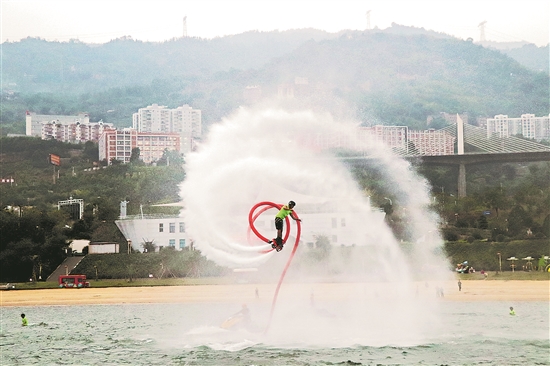 水域旅游是云南高峡平湖精品旅游线路上的一大亮点,绥江金沙水上乐园利用金沙江水域合规开发旅游资源,有游艇、快艇、水上降落伞、热气球、水上飞龙等惊险刺激的水上娱乐项目,同时引进中国特技滑水队在景区内开展常态化训练及表演。据介绍,这里年均接待游客数量约30万人,年均旅游收入约3000万元。