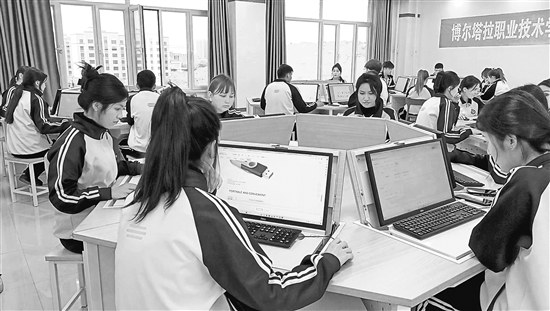 11月5日,博尔塔拉职业技术学院商学院的学生在上电子商务课。位于新疆博尔塔拉蒙古自治州的博尔塔拉职业技术学院由湖北省援建,学校的课程与当地发展紧密结合,学生毕业后即可进入跨境电商、旅游等行业工作,为促进当地经济发展提供了大量人才。