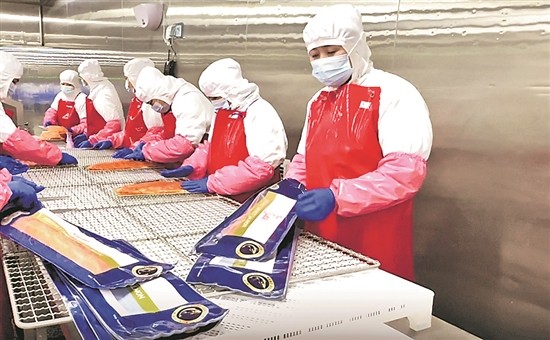 深居内陆、离海最远的新疆因出产海鲜而火爆“出圈”。近日,记者在新疆鳟贵鲜食科技有限公司里看到,10万级的洁净车间里,每天加工的三文鱼原料在10吨左右,生产的产品包括速冻鱼柳、烟熏三文鱼片、刺身切片等。新鲜出水的三文鱼24小时内便可完成加工、包装、运输等全过程,并送达消费者餐桌。目前,新疆的三文鱼产品已遍布全国各地,同时走出了国门,销往新加坡、马来西亚、日本等国。(工人日报记者 程莉莉 周子元)