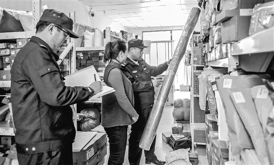 11月2日,甘肃省平凉市警方对辖区快递包裹代收点开展安全检查和法治宣传活动,并适时向相关负责人进行法治宣传和相关法律法规讲解,确保“双十一”期间辖区社会治安平稳有序。郑兵 摄/视觉中国