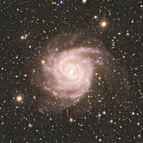这是欧洲航天局日前公布的“欧几里德”空间望远镜拍摄的螺旋星系IC 342的彩色图像。