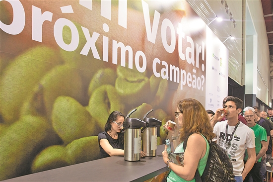 巴西贝洛奥里藏特近日举办第11届国际咖啡周,吸引了超过40个国家和地区的2万多人参加。图为参观者在此次咖啡周上品尝咖啡。新华社记者 王天聪 摄