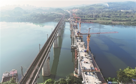 图为合龙后的湘桂铁路柳江双线特大桥(右)。