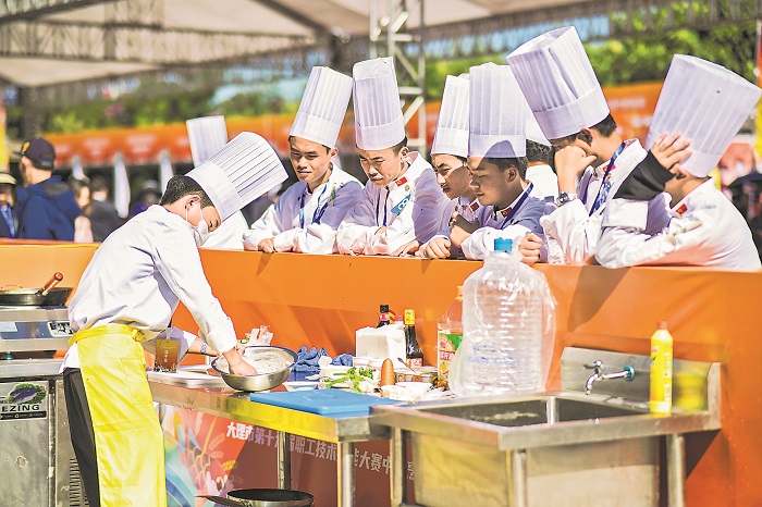 11月11日,在云南大理,“生态大理·鱼米之乡”大理市第十六届职工技术技能大赛中式烹饪专业竞赛上,53名选手就“大理传统菜”和“鱼类创新菜”两个科目进行比拼。据悉,大理市将以此次活动为契机,大力培育烹饪技能人才,推动大理市餐饮美食产业高质量发展。