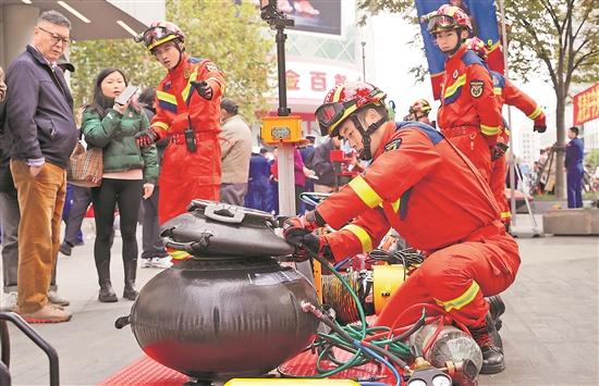 当日,上海市长宁区消防救援支队主办的2023年“119”消防宣传月启动展示活动在辖区内虹桥艺术中心举行。本次展示活动主题为“预防为主,生命至上”,展区内集中了多用途无人机、超高压千斤顶、气动起重垫等装备,让市民在活动中零距离接触消防“黑科技”,增强消防安全意识。
