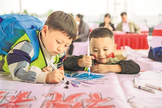 近日,由共青团郑州市委、中建五局装饰幕墙有限公司西北分公司、中原豫资投资控股集团有限公司联合举办的“建证未来·匠心设计美好生活”游学日活动开展。来自奇色花福利幼儿园的64名小朋友化身“小小建筑师”,走进郑州金融岛豫资控股大厦项目和中原资产项目,现场感受匠心。张娜 摄