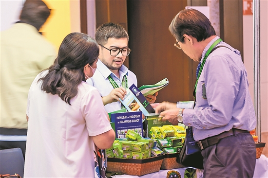 当地时间11月14日,在菲律宾首都马尼拉,人们在第二十届世界中医药大会上参观医药产品。新华社发(乌马利 摄)