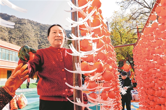11月14日,在舟曲县立节镇杰迪村,村民在晾晒柿子。