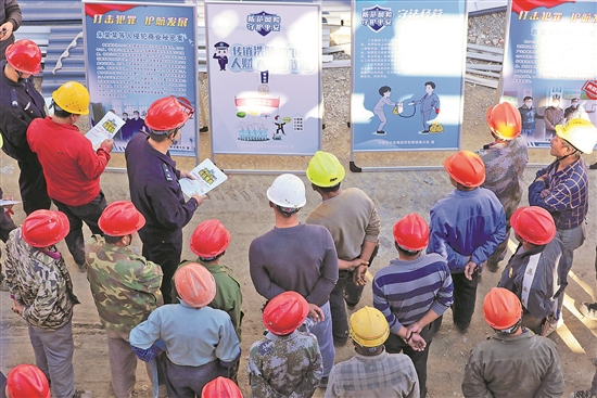 11月22日,安徽省宁国市公安局宁墩派出所前往辖区企业建设工地开展安全防范类普法宣传,重点围绕打击非法集资以及非法传销类展开宣传,旨在有效提高职工的防范意识,维护自身合法权益。本报通讯员 高鹏 摄