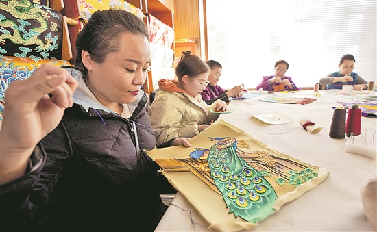 2021年5月,蒙古族唐卡(马鬃绕线堆绣唐卡)正式列入国家级非物质文化遗产代表性项目。生活在内蒙古阿拉善盟阿拉善左旗的陶格日勒老人是马鬃绕线蒙古族唐卡制作技艺的传承人。2015年陶格日勒成立工作室,制作、销售马鬃绕线蒙古族唐卡,并无偿将这一技艺传授给当地的农牧民。目前,陶格日勒的工作室吸纳了30多人就业,招收100多名学徒,免费为700多名农牧民培训技艺,带动他们致富。 新华社记者 王毓国 摄