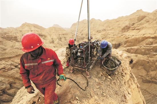 采访几日,见到了物探人太多的艰辛,行走在悬崖峭壁、机器需要人拉肩扛、起早贪黑地干活、每一脚下去都是尘烟四起……是什么让他们如此坚韧?