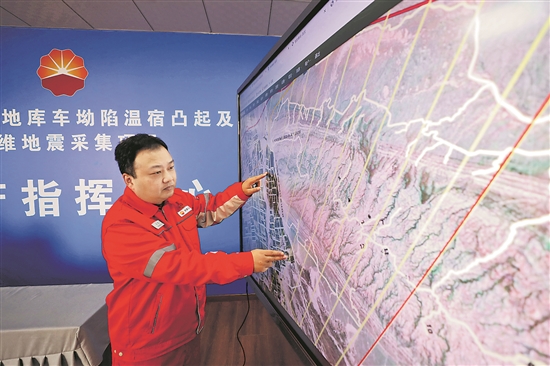 11月8日,指挥部里的智能化地震队系统。现在,在指挥部就可以随时了解施工进展。