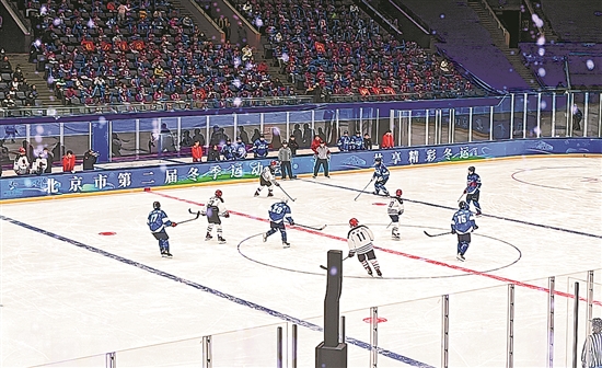 11月27日,北京市第二届冬季运动会在国家体育馆开幕,图为开幕式上的冰球表演赛。本届市冬运会由北京市人民政府主办,是进入后冬奥时代北京举办的最高级别的大型综合性冬季运动会。本报记者 刘兵 摄