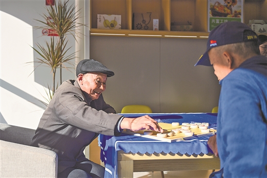 11月29日,老人在舟山市定海区“幸福客厅”休闲区下象棋。