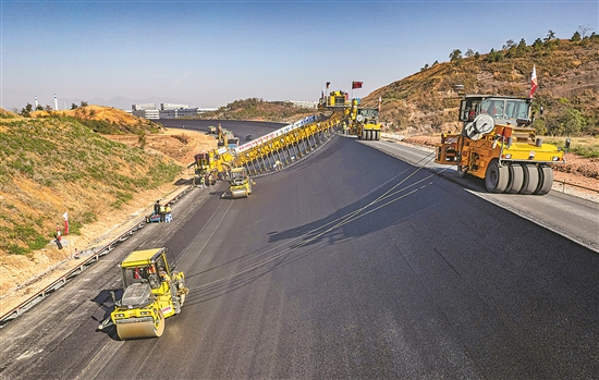 日前,江西省上饶经开区中交上饶汽车试验场项目上演了现代化建造的精彩一幕:在倾角达44.43°、位列全国第三大倾角的高速环道上,桥式摊铺机、鼓式压路机一体化作业,完成长达48小时的全幅一次性摊铺,标志着全长7.195公里的高速环道摊铺全部完成。该项目预计2024年7月全面建成试运行。