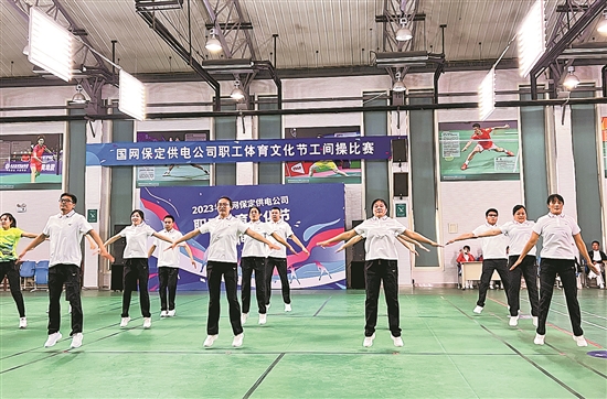 为增强员工体质,提升精神风貌,国网博野县供电公司定期组织各种文体活动,并积极参加市公司组织的乒乓球、羽毛球、工间操等项目比赛,进一步促进了企业职工全民健身活动的开展。图为该公司员工工间操比赛现场。