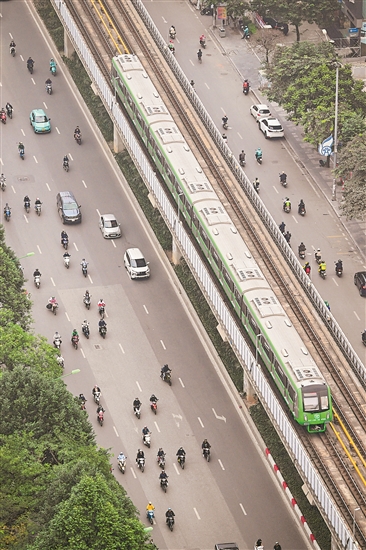 河内吉灵-河东线轻轨由中国中铁六局集团有限公司承建,是中越两国共建“一带一路”的标志性项目。这条越南首条城市轻轨总长约13公里。
