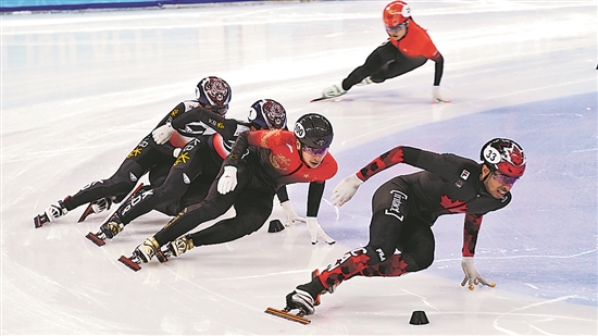 近日,2023~2024赛季国际滑联短道速滑世界杯北京站收官。刘少昂在男子1000米决赛中滑出1分23秒696,摘得本站世界杯中国队唯一一枚金牌。图为刘少昂(左二)在比赛中。根据安排,下一站的比赛将于12月15日~17日在韩国首尔举行。本报记者 窦菲涛 摄