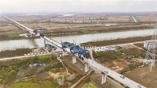 12月14日,随着最后一孔箱梁稳稳落在桥墩上,沪渝蓉高铁武宜段建设迎来重大节点——天门段箱梁架设全部完成,标志着中铁上海工程局集团武宜铁路3标段卢市制梁场全面完成。这给后续无砟道床施工和铺轨作业奠定了坚实基础,为通车运营提供了有力保障。