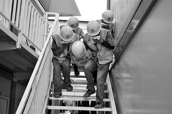 演练现场设置了6个应急小组,并邀请消防支队讲解常用的消防器材及灭火设施。本报记者 刘友婷 本报通讯员 耿刘林 摄