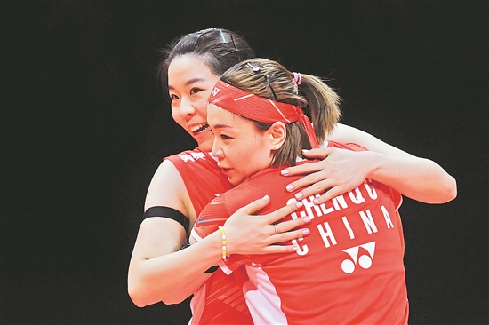 12月17日,陈清晨(右)/贾一凡夺得世界巡回赛总决赛女双冠军。新华社记者 黄宗治 摄