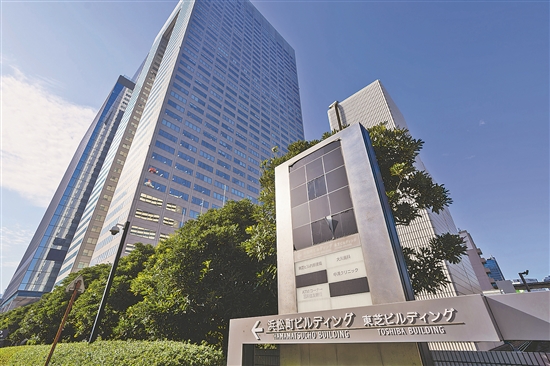 这是当地时间12月20日在日本东京拍摄的东芝公司总部。日本东芝公司官网发布的文件显示,该公司20日从东京证券交易所和名古屋证券交易所退市,结束74年的上市历史。新华社记者 张笑宇 摄
