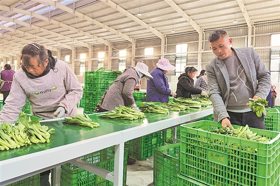 2021年,因车祸左腿截肢的残疾人林春俊成立富川利发果蔬农民专业合作社,以“合作社+基地+农户+市场”的经营模式,种植莴笋、迟菜心等蔬菜1000多亩,年产值400多万元。富川县残联通过发展集种植、养殖为一体的农民专业合作社,吸引周边残疾人就近务工,同时带动残疾人发展种养殖,让残疾人实现在家门口就业。目前全县有500多名残疾人通过在合作社务工实现就地就近就业。本报记者 唐姝 摄