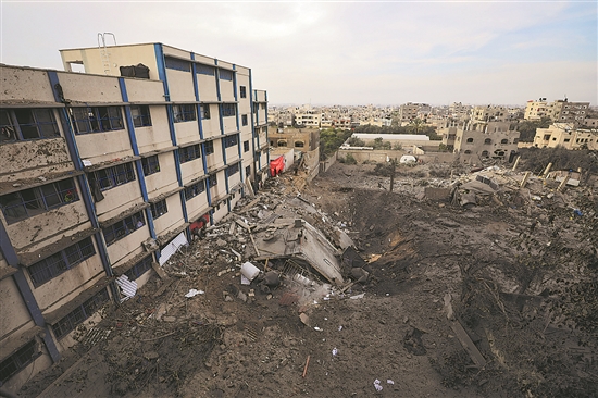 这是当地时间12月20日在加沙地带南部城市拉法拍摄的以军空袭后的建筑废墟。