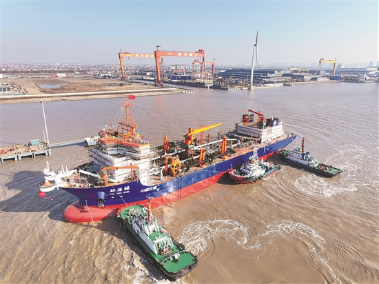 12月24日,由我国自主研发的全球最大、国内首艘双燃料动力系统的大型耙吸式挖泥船“新海鲟”轮,在江苏启东顺利下水,标志着我国LNG动力耙吸式挖泥船的研发设计建造填补了清洁能源挖泥船的空白。