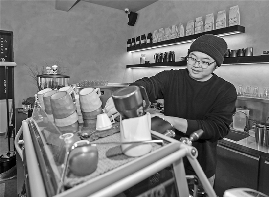 近年来,浙江省宁波市江北区通过整合乡村优势旅游资源、优化乡村空间布局、创建优质农旅品牌等措施,壮大村级集体经济,实现农旅融合、强村富民,促进乡村振兴。图为当地一位咖啡师在一间由老旧厂房改造而成的咖啡馆内工作。新华社记者 江汉 摄