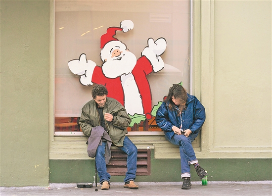 这是当地时间12月23日在美国加利福尼亚州旧金山街头拍摄的无家可归者。