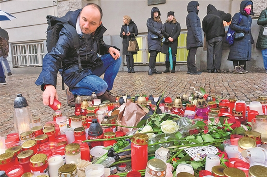 捷克23日举行全国哀悼日活动,悼念21日首都布拉格查理大学枪击事件遇难者。该枪击事件造成14人死亡,25人受伤。新华社记者 邓耀敏 摄