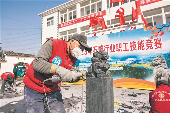 当日,繁昌区总工会、区人力资源和社会保障局、孙村镇人民政府联合举办繁昌区2023年石雕行业职工技能竞赛,旨在弘扬当地优秀传统文化及源远流长的石雕文化,促进石雕技艺传承和创新能力,培养造就高水平的石雕技能队伍。本报通讯员 肖本祥 摄