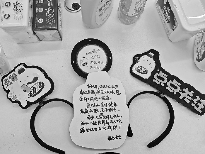 有云股东给几位大叔送了可爱的发箍,直播时沈军常常会把它们戴在头上。本报记者 李娜 摄