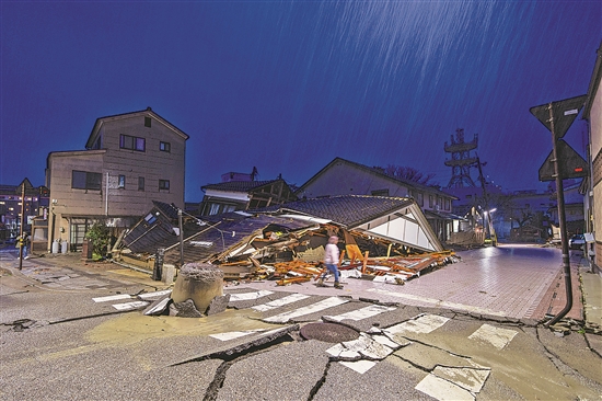 这是当地时间1月3日在日本石川县轮岛市拍摄的损毁房屋。 新华社记者 张笑宇 摄