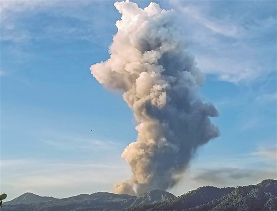这是当地时间1月3日在印度尼西亚北马鲁古省拍摄的喷发的杜科诺火山。据印尼火山和地质灾害研究机构消息,1月3日,位于印度尼西亚北马鲁古省的杜科诺火山喷发。新华社发 (印尼火山和地质灾害研究机构供图)