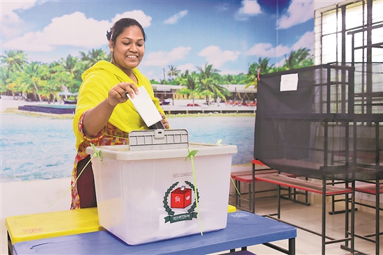 孟加拉国国民议会选举当地时间7日8时开始,共有1970名候选人竞争议会300个席位中的299个。新华社发