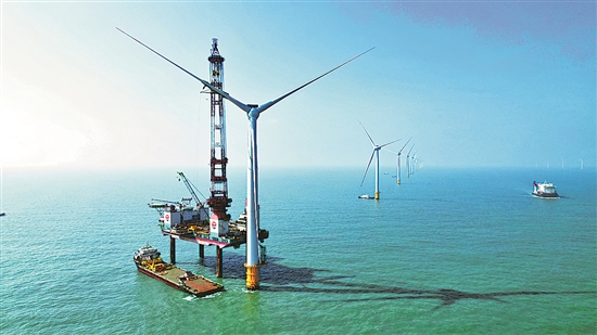 2023年12月29日上午,中交一航局总承包分公司参建的华能勒门(二)60万千瓦海上风电项目并网发电,标志着国家千万千瓦级粤东海上风电基地首批示范项目建成投运,年发电量预计达20亿千瓦时,年节约标煤65万吨,减排二氧化碳180万吨。该项目是全国首个全场使用11兆瓦大机组的海上风电场,多项技术应用填补行业空白。刘家晖 白占楠 摄