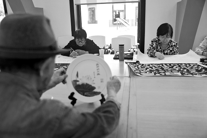 近日,在浙江省嘉善县姚庄镇沉香村,老人们在一处养老活动中心绘画。近年来,姚庄镇依靠地域优势,围绕养老服务、生态绿色、田园牧歌主题,探索乡村养老新模式。老人们在这里不仅能感受到“最爱是农家,竹篱茅舍出青黄”的田园风光,还可以通过定期培训,享受参与式、互动式养老服务,乐在其中。本报记者 王伟伟 摄
