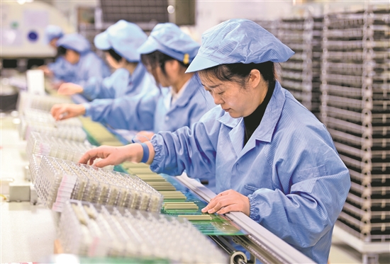 近年来,河北省廊坊市固安县积极承接京津产业转移,围绕发光材料、柔性屏、显示模组等打造电子信息产业集群,助推县域经济高质量发展。新华社记者 王晓 摄