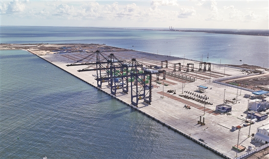 这是近日在埃及亚历山大拍摄的阿布基尔集装箱码头(航拍照片)。新华社发(中国港湾供图)