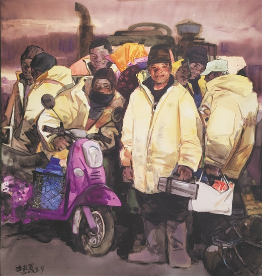 当我看到煤矿工人露着洁白牙齿的笑脸,水产公司员工古铜色的脸上被冻掉皮露出的块块白斑,我的内心深处就会涌起阵阵波澜;当我听到他们畅快地吼着“回家,喝酒,吃肉”的时候,更是被深深地震撼到了。他们不空谈理想,每天能喝到酒,吃到肉就心满意足。正是他们的辛勤付出,让人们的生活更加美好。我渴望能用自己的画笔,把他们朴实、憨厚的形象和淳朴、善良的内心呈现给世界。李毅军