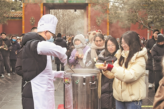 1月18日,农历腊月初八,是中国传统“腊八节”,喝腊八粥是腊八节的重要习俗。北京雍和宫举办“舍粥”活动,吸引众多市民前来领取腊八粥。 本报记者 杨登峰 摄